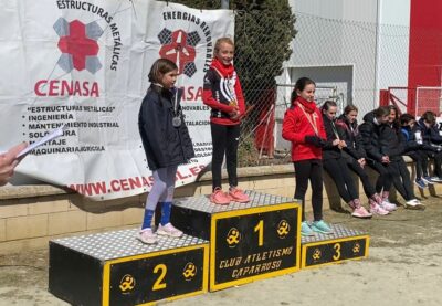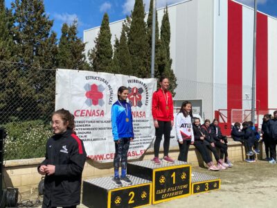 Para finalizar las medallas de bronce a cargo de LIDIA SAN MARTIN sub12F en los 60mts y ALBERTO CRISTOBAL sub14M. Y de nuevo ALBA DIAZ en longitud sub10F. Por su parte ADRIAN VAZQUEZ sub14M en lanzamiento de peso.